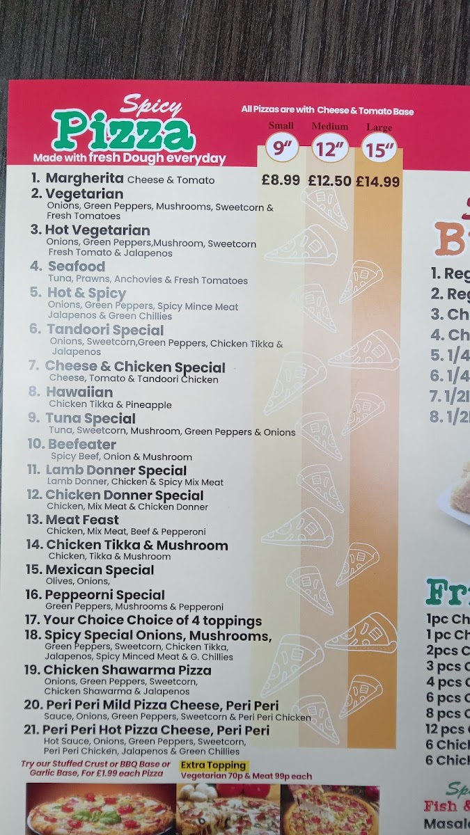 Spicy Chicken & Pizza Menu