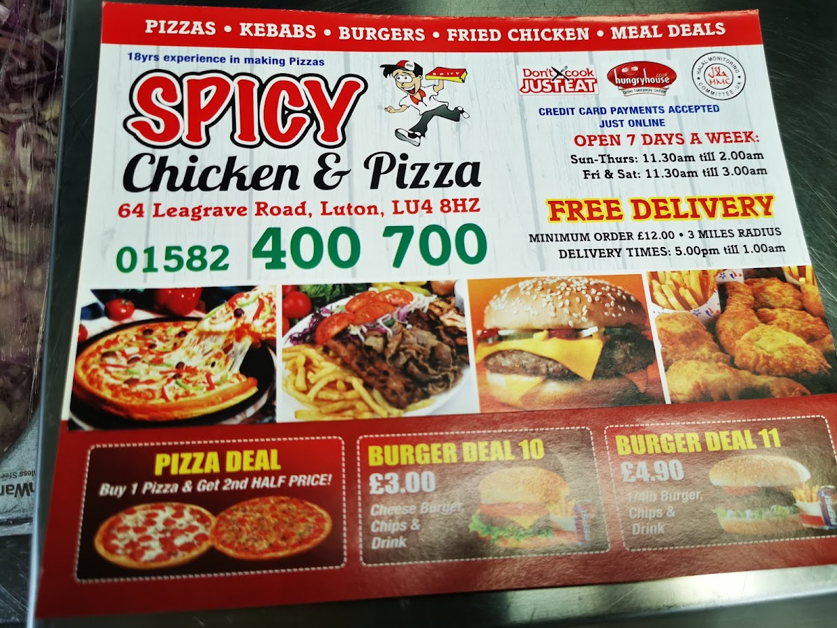 Welcome to Spicy Chicken & Pizza, a vibrant fast food gem located in Luton, UK. This restaurant specializes in hearty dishes that cater to varied tastes, ensuring a satisfying meal for everyone.